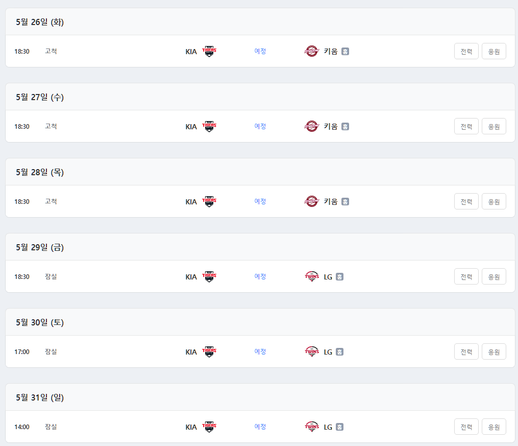 2026 시즌 기아타이거즈 전체 경기 일정은 아래 공식 채널에서 실시간으로 확인하세요.